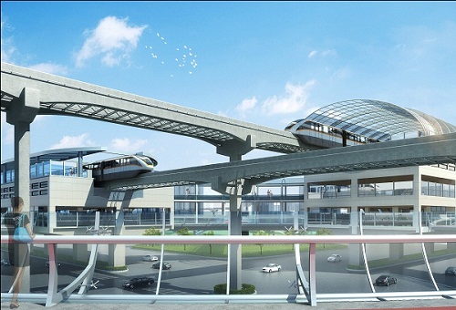 平行换乘、综合体一体开发的轻型跨座式单轨交通效果图
