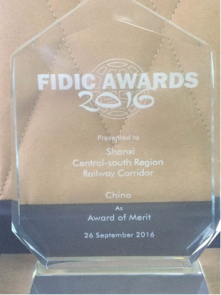 勘察设计的山西中南部铁路通道勇摘“菲迪克2016年工程项目优秀奖”。