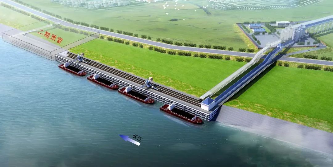▲华容煤炭铁水联运储配基地码头一期工程效果图