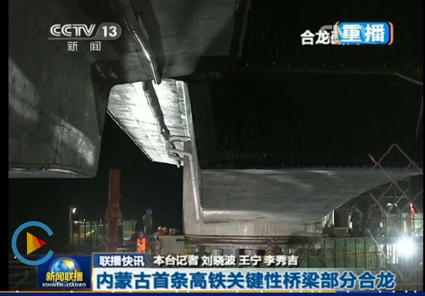 5月18日凌晨1点50分,由 设计的内蒙古首条高速铁路张呼铁路蒙古营印河特大桥40+56+40m连续梁38、39号墩梁转体合龙圆满成功,整个转体过程用时37分钟,大桥成功跨越集包二线。中央电视台、新华社、内蒙古电视台对施工全程进行了现场跟踪报道。