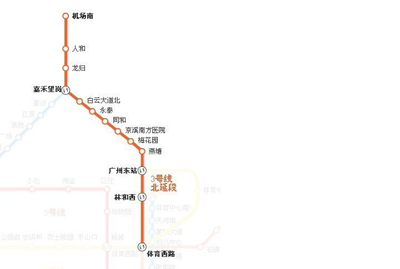 我公司承担完成了该工程全线总体咨询工作。本项目已于三号线北延段南起广州东站,北至新白云机场,全长30.9km,全部为地下线。全线共设11座车站,由南往北依次为燕塘、梅花园、京溪南方医院、同和、永泰、白云大道北、嘉禾望岗、龙归、人和、高增、机场南机场北。全线共有3座车站与其他线路换乘,燕塘站与六号线换乘、嘉禾望岗站与二号线换乘、高增站与九号线换乘。该线最高时速达120公里,是广州地铁中速度最快的线路。