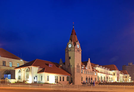 该工程为全国首个三面围合“U”布局的欧式风格尽端式车站,体现了青岛“碧海蓝天,绿树红瓦”的特色,实现了与城市交通的零换乘;建成了全国首个地下候车室,实现了建桥合一;创新设计了地下箱形挡墙及十字交叉拱形钢梁支撑单层网壳结构无站台柱雨棚;运用了一系列新技术、新工艺、新设备和新材料,如地下架空层防水设计、大空间消防设计、建筑一体化太阳能供电系统等。