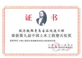 青岛火车站QC攻关小组,共获得国家级奖2项,省部级奖3项;获得国家级优秀咨询成果二等奖,国家级优秀设计二等奖,铁道部优秀设计一等奖,第九届中国土木工程詹天佑奖。