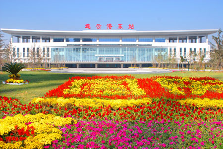 连云港东站位于连云港市五羊路尽端,五羊路连接新港城大道及开发区。旅客最高聚集人数按2000人规模设计,建筑面积:14599.8㎡。